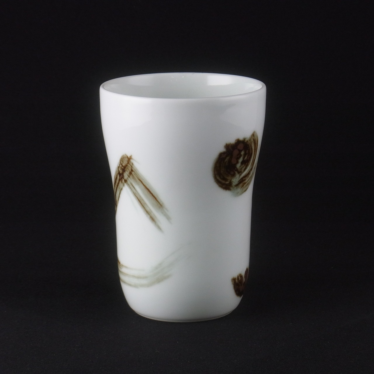 (19)は薄手の白磁に、錆絵で描かれた図柄が落ち着いた印象のコップです。